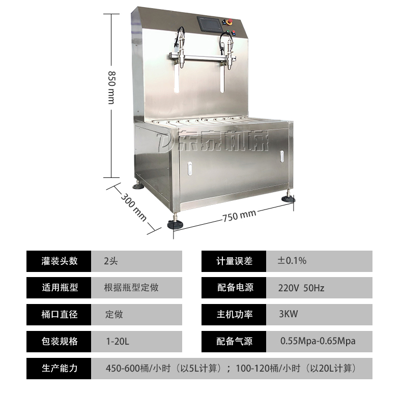 半自動(dòng)油脂灌裝機(jī)可以灌裝1-20L不等的各類食用油、潤滑油等,并且半自動(dòng)油脂灌裝機(jī)體形較小,移動(dòng)方便,多適用于中小型 的油脂生產(chǎn)廠家,幫助廠家實(shí)現(xiàn)更快、更的油脂灌裝。半自動(dòng)油脂灌裝機(jī)的兩個(gè)頭由兩個(gè)泵分別控制,灌裝量更加并且速度也大大提高。單頻變頻器調(diào)速,克服分布不均的現(xiàn)象。有極高的穩(wěn)定性,當(dāng)某一站管道堵塞時(shí),不會(huì)影響其他站,造成灌裝精度的變化。